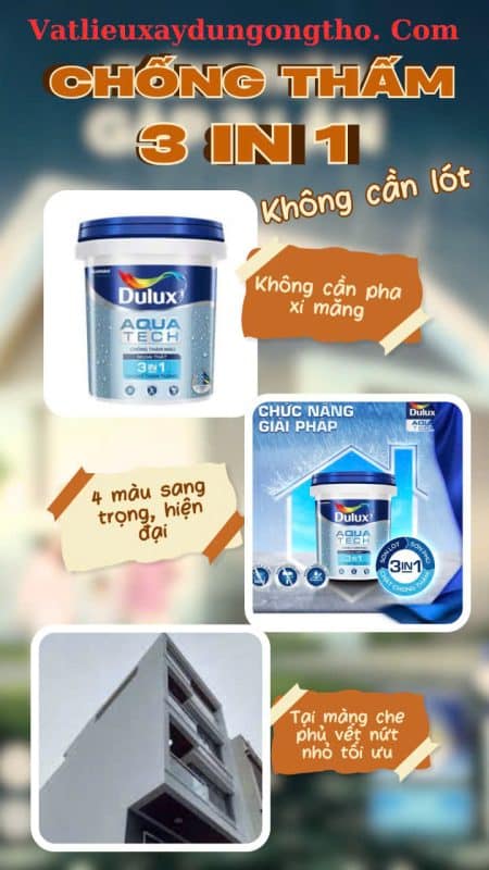 Sơn chống thấm là hạng mục quan trọng giúp bảo vệ công trình trước tác động của thời tiết, độ ẩm và nước mưa. Trong số các dòng sơn chống thấm cao cấp trên thị trường, Dulux Aquatech được đánh giá cao nhờ chất lượng ổn định, độ bền vượt trội và khả năng chống thấm hiệu quả lâu dài. Vậy giá sơn chống thấm Dulux Aquatech chính hãng hiện nay là bao nhiêu? Bài viết dưới đây sẽ cung cấp thông tin chi tiết và đầy đủ nhất để bạn tham khảo.